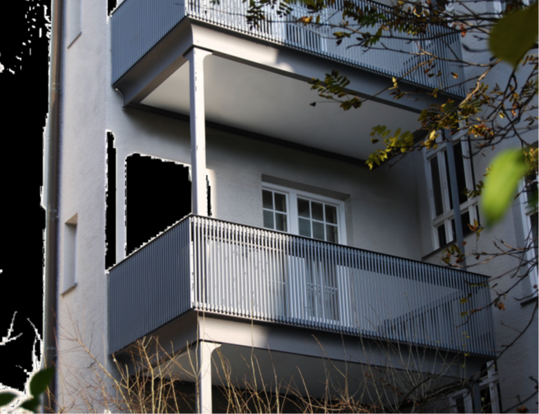 Für die mittleren Wohnungen, die nur nach Westen rausgehen, wurde im Falle eines Brandes vor Jahren eine Feuerleiter angebaut, da aufgrund der baulichen Verhältnisse eine Rettung über Drehleitern der Feuerwehr bisher nicht möglich war. Besteht künftig