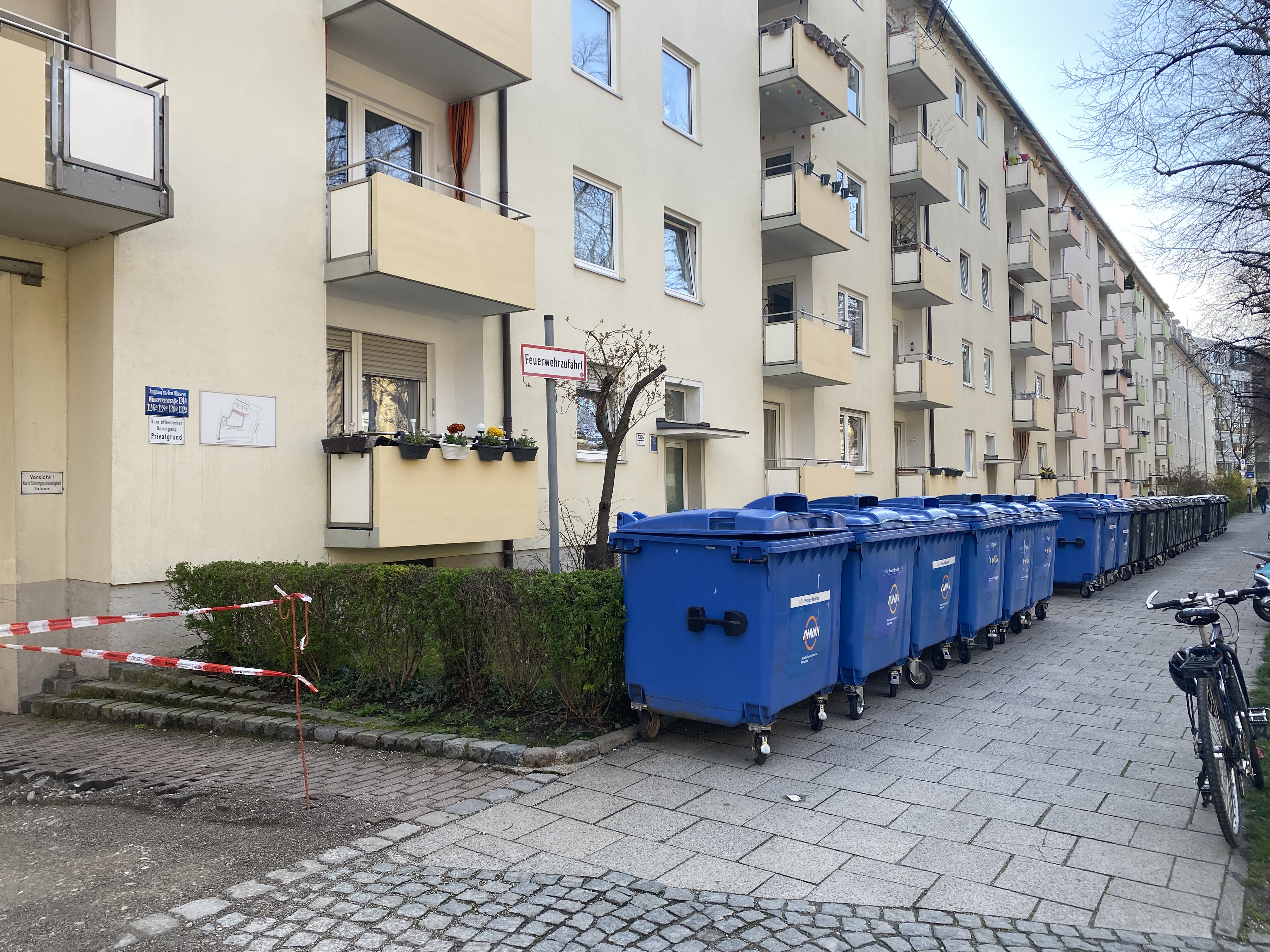 VfV: Die Mülltonnen (Restmüll und Papier) werden bis zur ausreichenden Befestigung der Durchfahrt an der Winzererstraße bereit stehen.