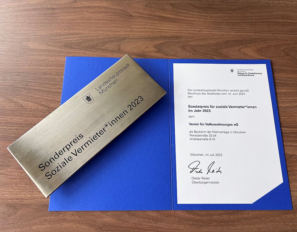 sich den Empfehlungen der ehrenamtlichen Kommission angeschlossen und unserer Genossenschaft den „Sonderpreis für soziale Vermieter“ zuerkannt.