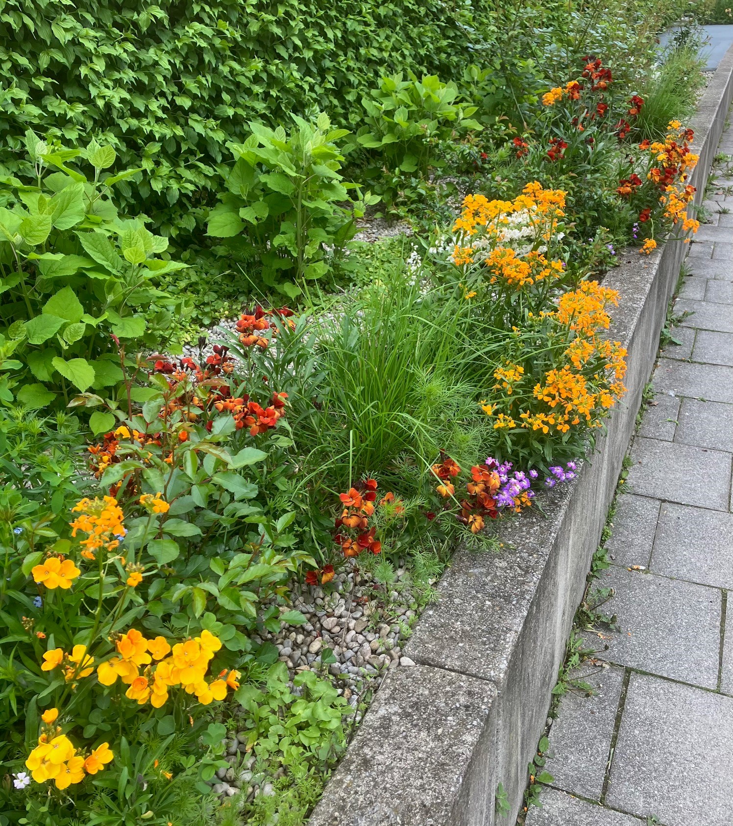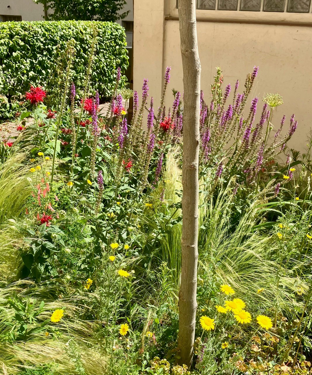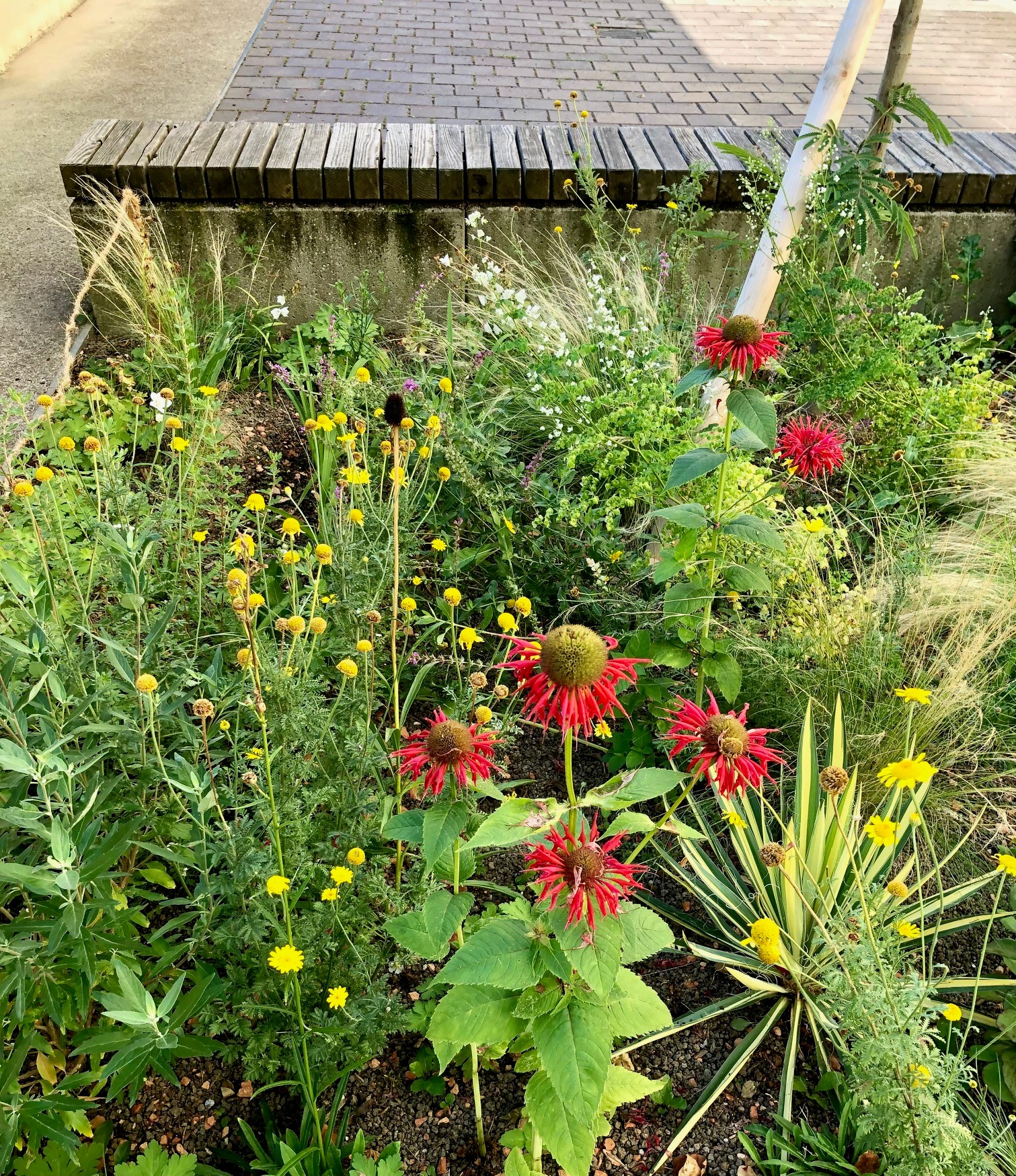 Aus reinen Gehölzpflanzungen oder den klassischen Stauden/Gräser-Kombinationen, wurden an einigen Stellen Blumenwiesen angelegt. Die Bienen und auch unser „Auge“ können sich nun, der jeweiligen Jahreszeit entsprechend, an bunten Highlights erfreuen. Ebenfalls mussten einige Sträucher stark reduziert, oder sogar entfernt werden, um die Blütenbildung und Vitalität zu fördern.